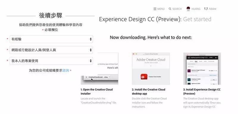 要安装Adobe Xd,目前唯一的办法是从官网下载安装,因为现在Xd是试用版,所以下载安装和使用都是免费的。若Mac上事先已经安装Adobe Creative Cloud桌面端,可直接跳到第5步。