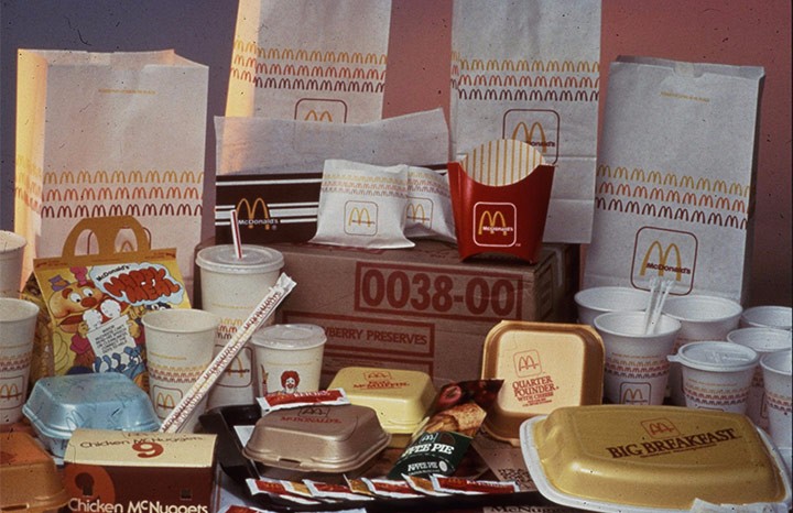 1983-1990年的包装。随着早餐品类的丰富,麦当劳提供了更多的外带包装