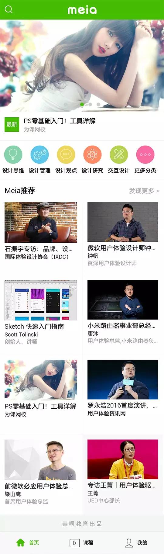 Meia美啊把众多课程进行了归类,方便各类型用户快速查找到所需内容。