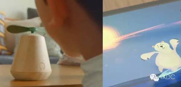 在 YIBU 团队发布的DEMO视频中:iPad 屏幕上有一只北极熊睡在一块浮冰上,当孩子把温度传感器放入冰箱,北极熊会冷得瑟瑟发抖;若对着风力传感器吹风,屏幕中的浮冰会带着北极熊被吹跑;孩子摆动方向传感器,北极熊会失去重心而晃到。这样的互动,让孩子不再只关注于虚拟世界,对周围的现实环境也有了探索与认识。虚拟人物的反应能让孩子对光、热、风、声音等各种现实条件有充分的认识。