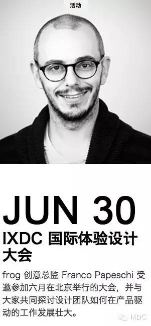 今年的国际体验设计大会,IXDC邀请到了frog创意总监Franco Papeschi作为7月1日IXDC大会开幕暨大会演讲嘉宾之一,为你讲述设计团队如何在产品驱动的公司发展壮大,设计策略为何是设计领导者不可或缺的技能。