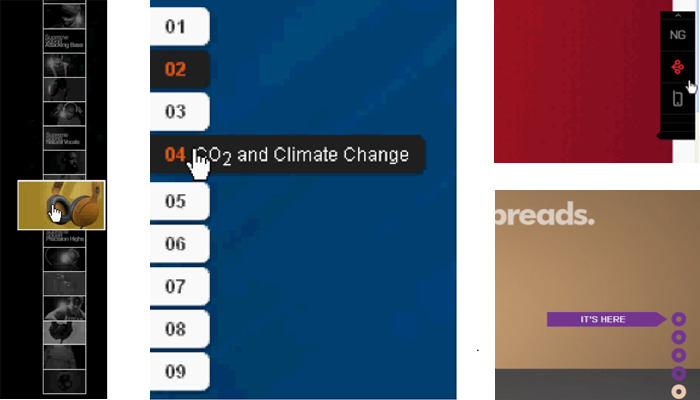越来越多的国外网站运用侧边栏导航来辅助浏览页面,方便用户到达想关注的区域。不过使用这些侧边栏,需要注意页面的情况,避免其淹没在繁杂的页面元素之中,成为用户眼中的“牛皮癣”。