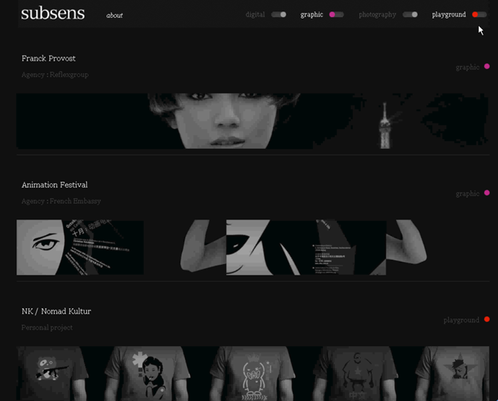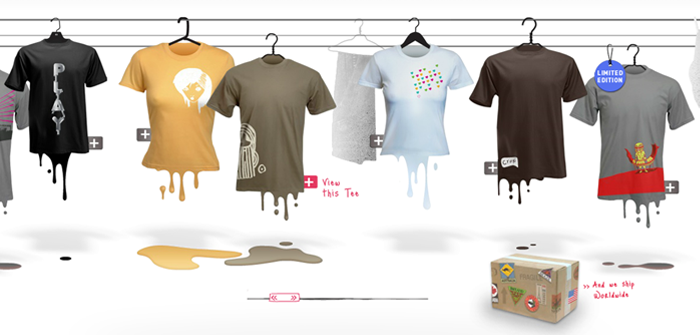 电子商务网站,T恤被挂在衣架上进行展示,鼠标移动时,衣服会朝相应方向移动,这种设计是取材于现实生活,拉近了网络跟现实的距离,流畅的交互、丰富的细节让用户有实体店购物的感觉。