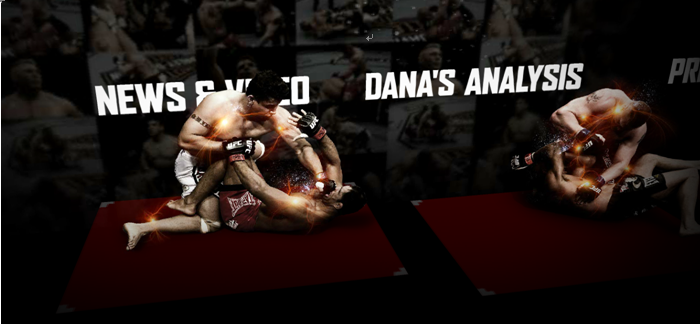 这个是三维视角的交互,用户进入页面后,会有4个选项,随着用户鼠标的移动,会自动选择某个选项。这样炫酷的设计的原因跟网站的主题有一定的关系(UFC格斗网站),带给用户较强的冲击感。