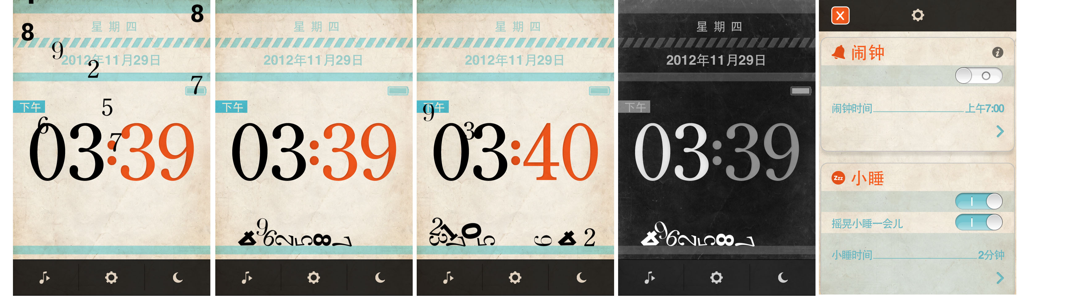 The alarm app是这样去表现时间的流逝,每当闹钟跳动过一秒,这一秒的数字就会落下,过一会就消失。将抽象的时间用具体的视觉形式表现出来,十分形象生动。当我盯着它看一会后,感受到了紧迫感,时间的流逝就像有形的物体一样不再属于我。时间永恒的话题,这款应用对时间的解读直白犀利,能发人深省。同时也让我想起了达利《记忆永恒》对时间的表现。