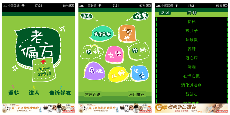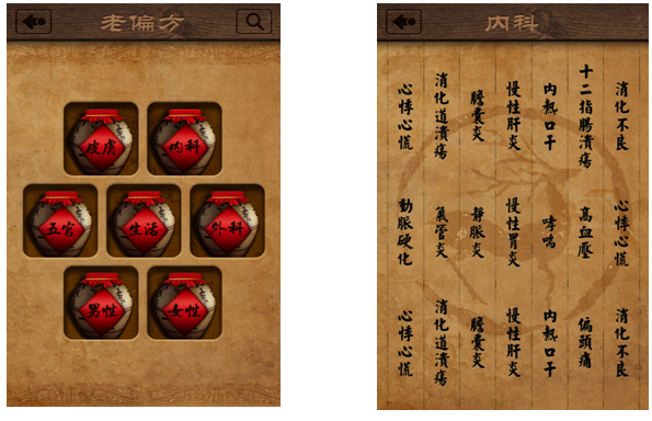 在APP Store 随意选择一款手机应用《老偏方》,用作实践。