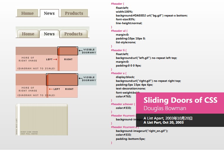 由于当时的一些技术问题,写出来的代码就会出现很多的问题,后来Douglas Bowman写出了一个程序,他不是一个技术人员,但解决了很多技术人员都没有办法解决的问题。当时CSC都没有成为一个规范,很多公司说希望制定这样的规范,希望W3C可以批准。当时他们希望可以推动一个javaScript Style Sheets的标准,一半是开发人员,一半是设计师,幸亏有设计师,他们认为自己只是想要一个简单的、可以操作的,所以没有通过。