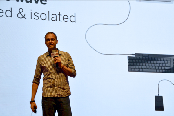 一开始,我们都会讲个人计算,那么个人计算的第一波是这样子的?这是第一次以用户为本的一种个人计算的体验,一般来讲是显示器、键盘和鼠标,也许再加上一个打印机,会写一个小小的程序,玩简单的游戏,或者进行一串指令的执行,这个已经是早期非常漂亮的计算机版本,当时大部分都没有想到移动性的问题,也没有互相的连接,也就是说没有联网的东西!然后就出现了一个非常大型的革命或者转型,当处理的速度变得越来越快、成本越来越低时,我们开始进行沟通,用电缆进行连接。