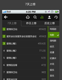 手机端爱奇艺排行榜