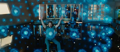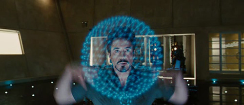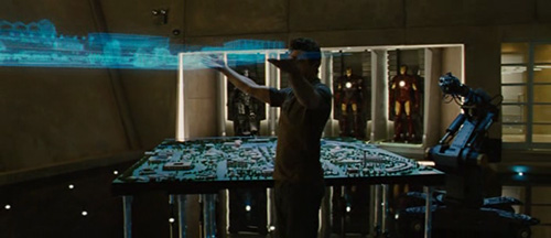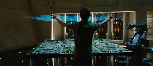 虚拟重力和动量会在手势进行中出现,即使按理说虚拟物品不应该有这些性质。我们可以看到《少数者报告》中Anderton是这么做的,而且《钢铁侠2》中Tony在移动他父亲的主题公园设计方案投影是也是如此。(下图)