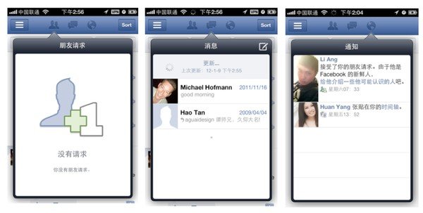Facebook 的朋友请求,消息,通知都是采用全局导航的方式,就是面板设计的丑了些~ ![]()