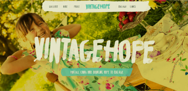 这个网站的标题看起来就像是用一只很粗的画笔画的很粗的痕迹。字体惊人的粗同时很具有表现力。背景是一种很漂亮的照片。它给用户一种非常开放和自由的感觉,同时描绘出了这个组织的特征。Vintage Hope 通过外借古老的瓷器为马拉维的不幸的人们筹款,整个视觉看起来是激动的,高兴的和积极的。同时网站只有1MB和40次HTTP请求,这是令人倾佩的。