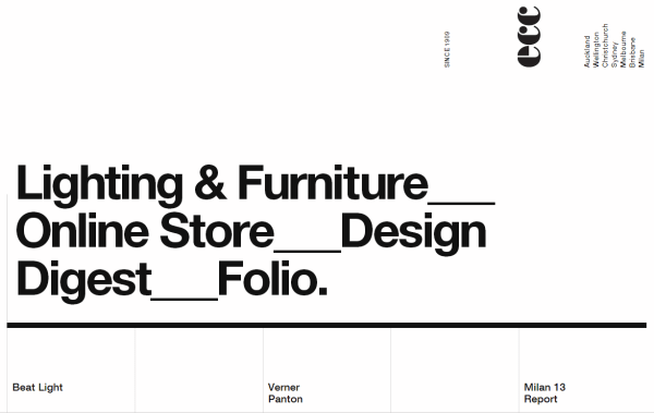 不论你是否喜欢,Helvetica都占据了这个网站的主要舞台。网站的分类按钮非常宽大,牢牢的抓住了用户的注意力。这个网站的平面设计非常的经典,干净,极简主义。网站右上方竖直的导航条的文字创造了一种很强的趣味效果,但是仍然能够让用户将注意力放在主要分类导航上。只有当鼠标悬停在图片区域的时候才显示这一点做得非常有趣。