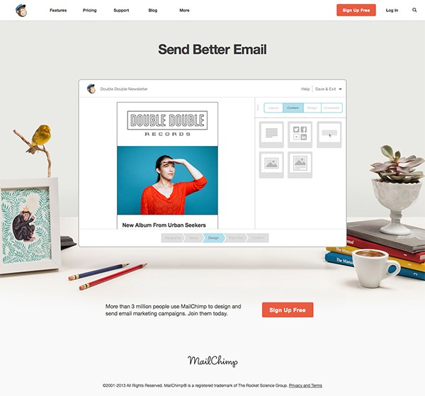 Mailchimp的留白使用的很利索,突出了品牌信息