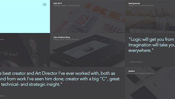 Jan Finnesand用了全屏的宽度与高度来放置方块,每一块都有特殊作用,大多展示了他以往的项目案例。充满整个浏览器窗口的方块造就了一件非常酷的设计。