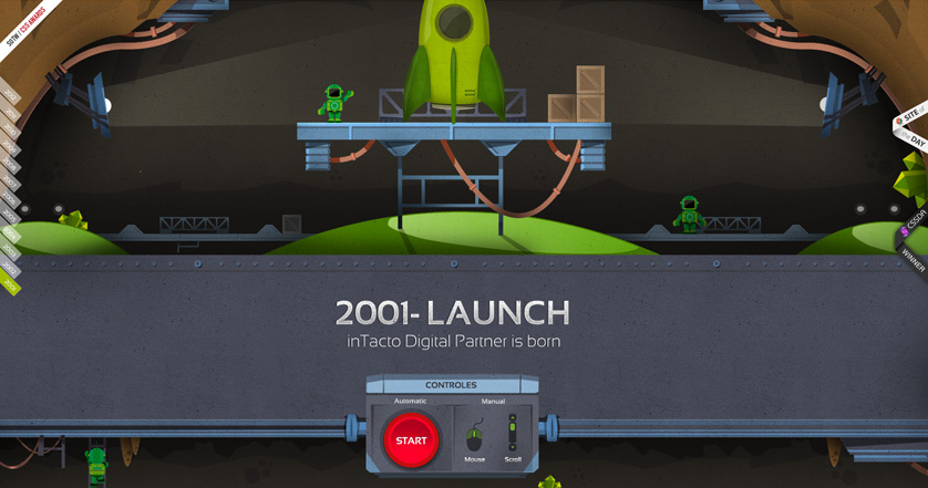 该页面当中采用了滚动视差,用一个发射的火箭升空所处阶段的展示来讲述该公司十年来的成长历程。