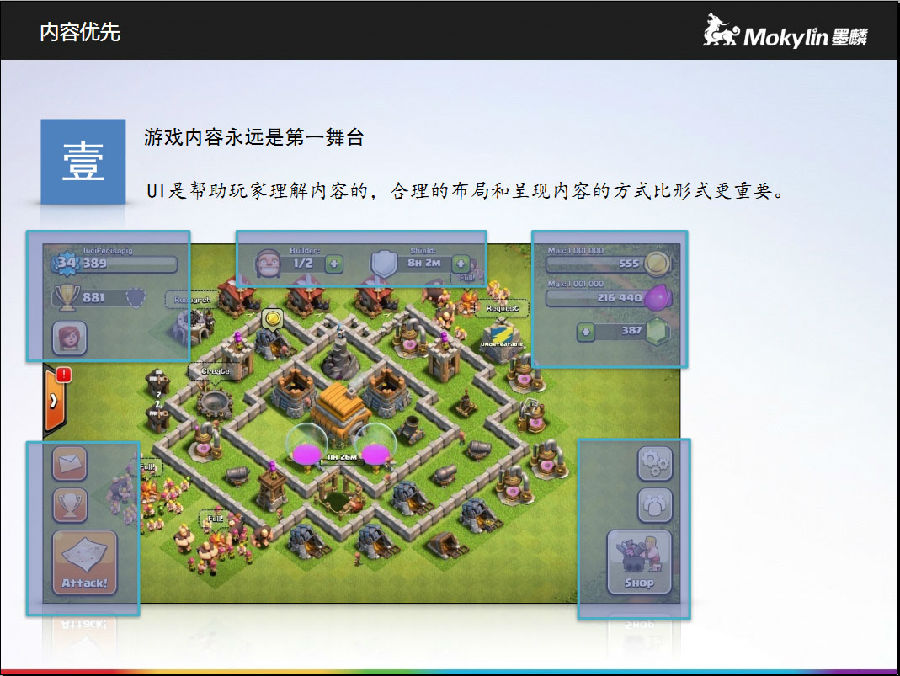 我们看愤怒的小鸟或者COC按钮很少,合理的布局跟呈现的方式,比形式更重要,怎么布局会比展现的形式要重要一些。
