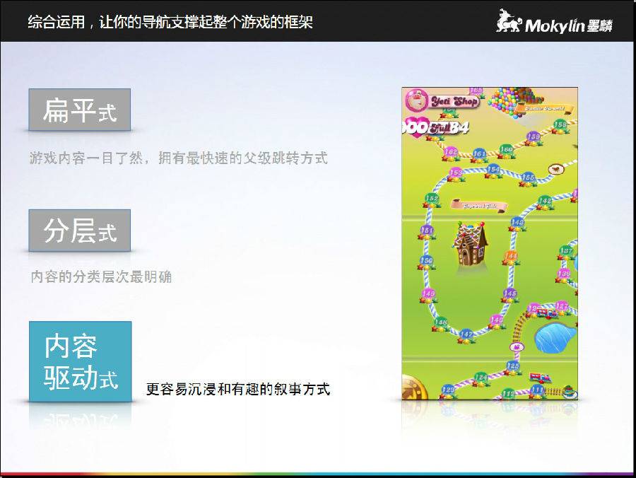 还有是内容驱动,我也提供一些案例给大家,你为了能够通更多关卡,然后来去操作整个游戏,内容驱动式这种方式其实是我最喜欢的,因为会让玩家的游戏目标感非常强。