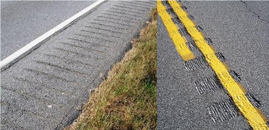 再如下图所示的路边的压痕,则刚好相反,通过触觉代替视觉提醒对驾驶到路边的车辆进行防呆提醒:你的车辆已经偏离主行车道了。通过行驶过程中车辆的颠簸感,比视觉引导更有效的指示驾驶员尽快调整方向。