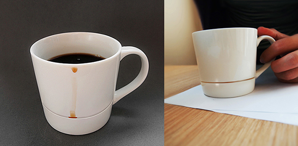 防呆设计的重要目标是避免错误。喝咖啡留到桌子上是不是很懊恼?那就别让这个错误发生:来自设计师Kim Keun Ae的创意,防污渍咖啡杯在杯子的腰线上开了一条环状凹槽,于是,顺着杯子边沿淌下的咖啡渍,流到这里就会横向发展,再不会继续往下弄脏桌子~