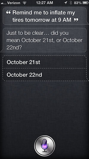 当用户在午夜提到“明天”时,siri会询问用户具体的时间,以防用户错误的做出对明天的定义。