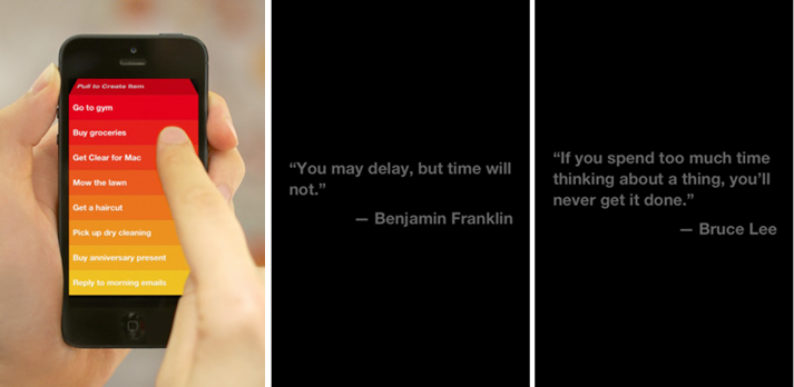 又或者,给用户以与众不同的空白页,让用户可以在空白中思考。Clear中,当用户删除所有list或新建一个空白项时,页面展示出一些有意思的语句,让用户不再空白。
