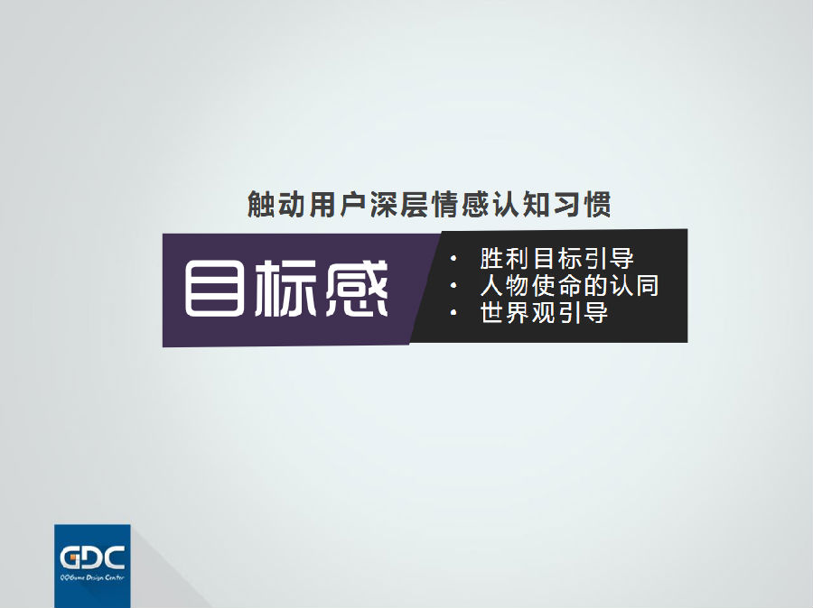 最后一点我们其实可以从这个产品的目标感上面来让我们用户进行引导,让他来触动到我们用户深层情感的认知,具体来说我们可以从世界观以及可以给他赋予一些具体的任务,以及使命,来去引导他达到游戏胜利的目标。