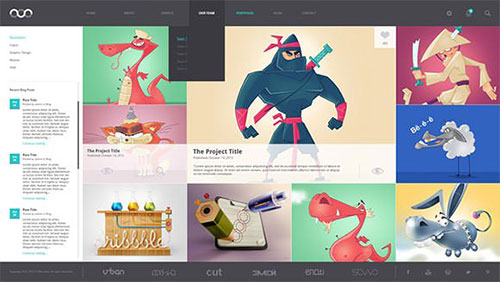主要用来展示作品的栅格布局的首页设计,配色方案也不错。