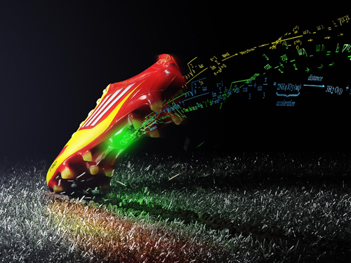 和致力于球衣的彪马公司不同,阿迪达斯公司在足球配套产品领域的科技研究更是不遗余力。不久前阿迪达斯推出的adizero f50 miCoach由于内置了芯片,被成为“有大脑的足球鞋。”adizero f50系列足球鞋在鞋底配有特制凹槽,用于装配革命性的miCoach速度传感器。miCoach速度传感器可以捕捉360°的动作,并记录包括瞬间速度、平均速度(每一秒都记录在内)、最快速度(每5秒记录一次)、冲刺次数、移动距离、高强度水平下的移动距离、步伐及步幅率在内的关键性指标。在比赛或训练中,miCoach可以储存长达七小时的运动数据,并和个人电脑进行无线传输连接。