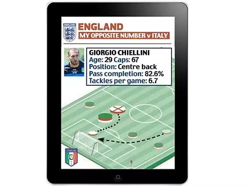 本届世界杯赛,英格兰队主帅霍奇森已经将iPad带到了巴西,当然,他的iPad不是用来娱乐的。英格兰队的球队表现分析经理Andy Scoulding和其助手编写了相关应用并负责该项目,他们希望通过iPad上的特殊应用可以帮助教练和球员研究对手,更好的辅助训练。通过iPad,英格兰的球员们可以直接通过iPad查看所需要的信息,以及研究竞争对手的表现。