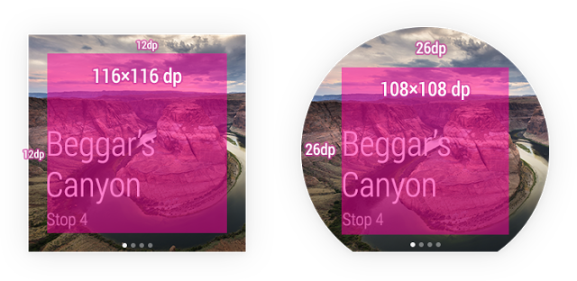 另外,Android Wear的设计人员还可以选择方形和圆形两种通知显示形式,而这可以根据手表表盘的形状进行选择,并且自由确定大小尺寸。比如为了明显区别,之前就有开发人员分别针对方形的LG G Watch和圆形的Moto 360开发出了相同界面的不同形状风格。