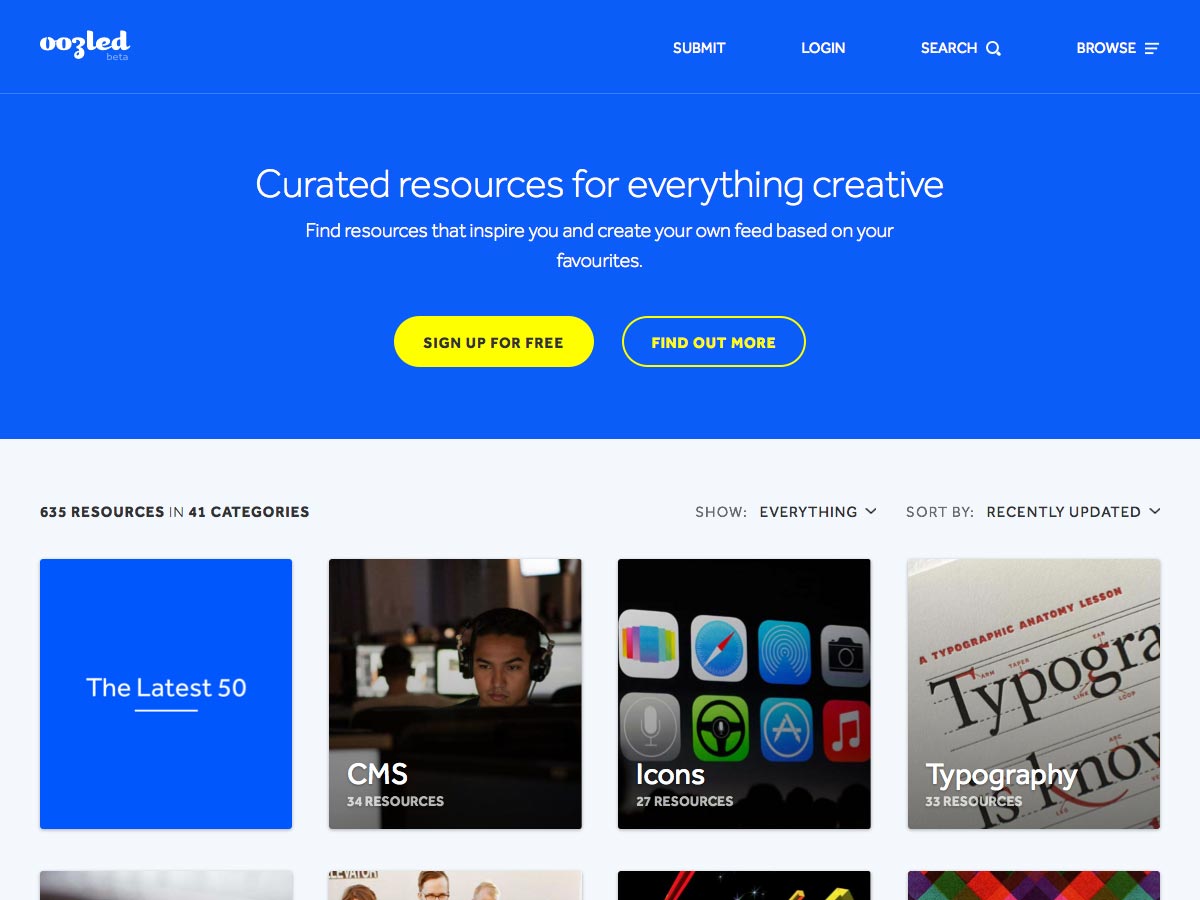 Oozled精心组织收集了整个互联网的创意资源。类别涵盖字体、图标、CMS系统、灵感、研讨会、色彩等。