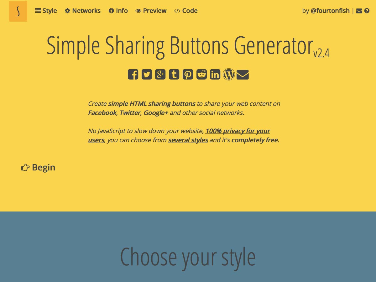 简易分享按钮生成器,使你可以轻松创建Facebook、Twitter、Google+等HTML分享按钮。有多种样式可供选择,而且它是完全免费的。