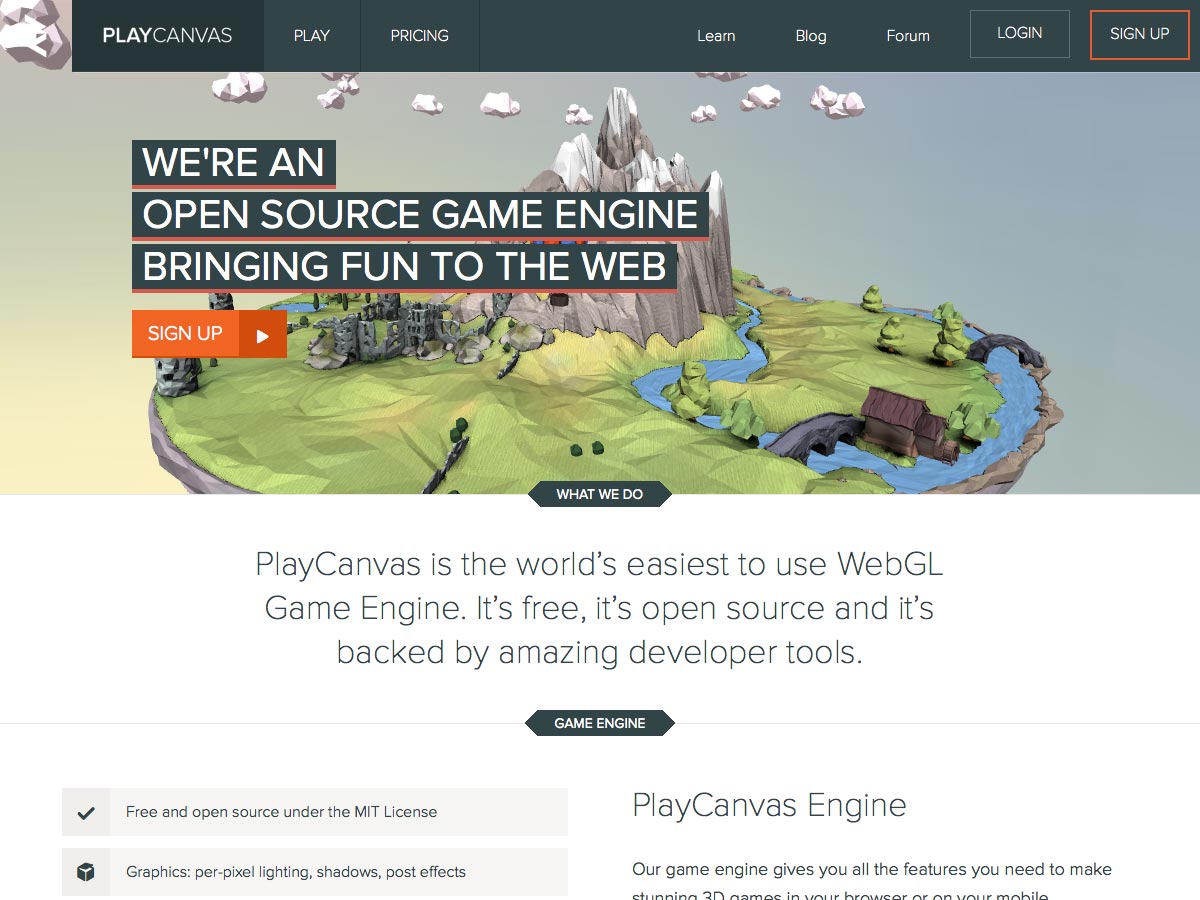 PlayCanvas是个很好用的免费开源WebGL游戏引擎,包括支持多人协作的开发工具。