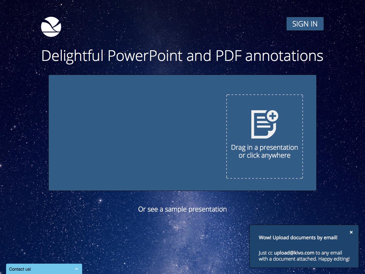 Kivo可以方便地标注PPT或PDF演示文件。拖入文件,上传,就可以开始了。