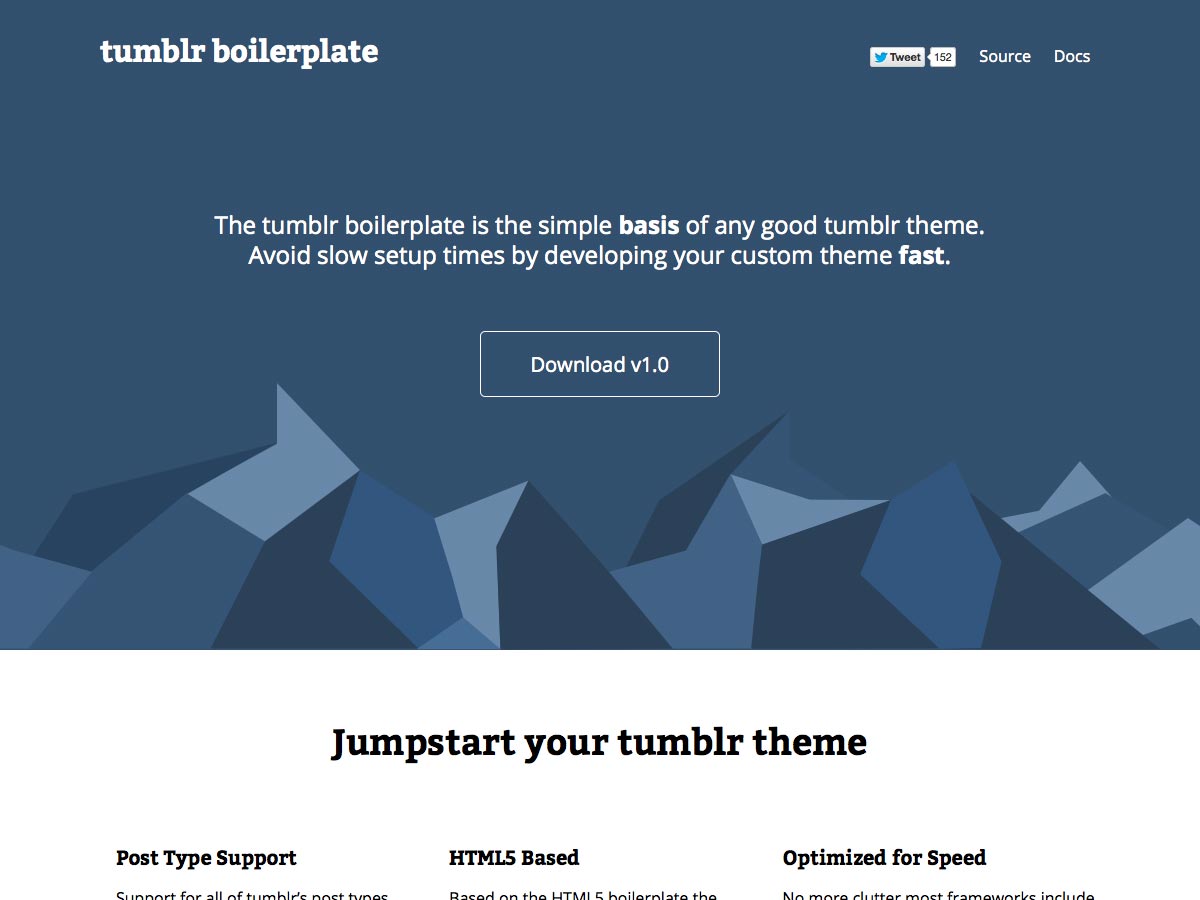 Tumblr Boilerplate是打造Tumblr模板的基础。它支持日志类型,基于HTML5,速度也做了优化。