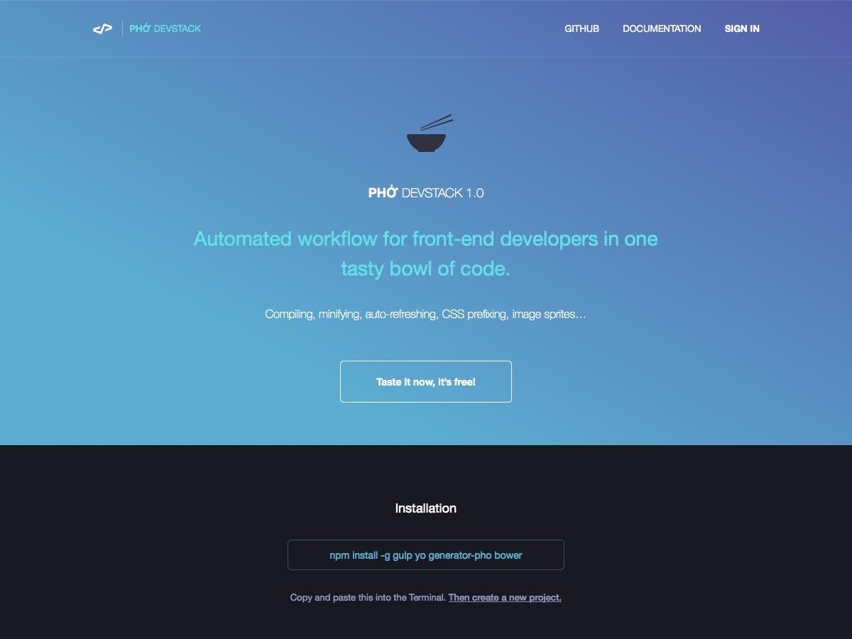 Pho Devstack是个前端开发者的自动化管理器。它包括编译、压缩、CSS前缀等工具。