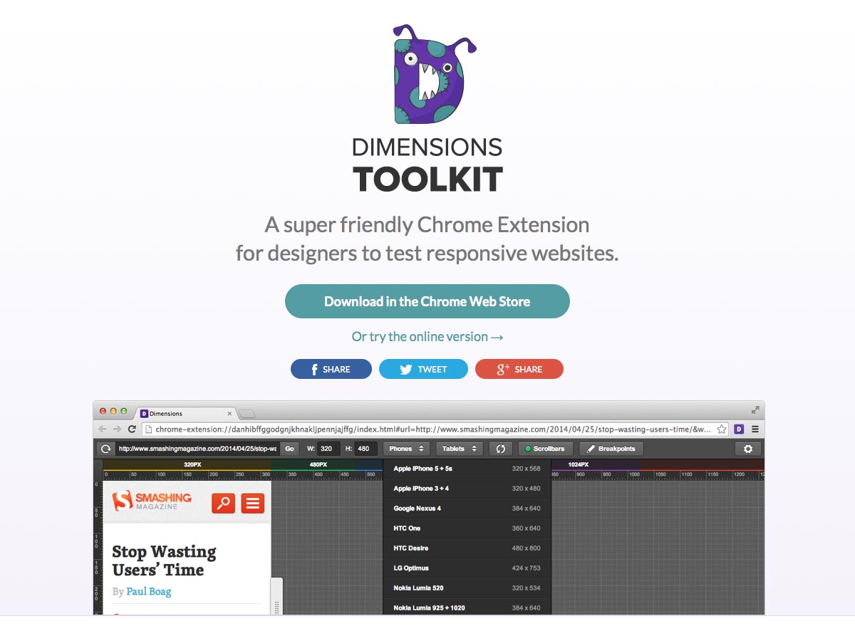 Dimensions Toolkit是个测试响应式设计的离线Chrome插件,它刷新很方便,你可以添加自定义断点。同时也有个在线版。