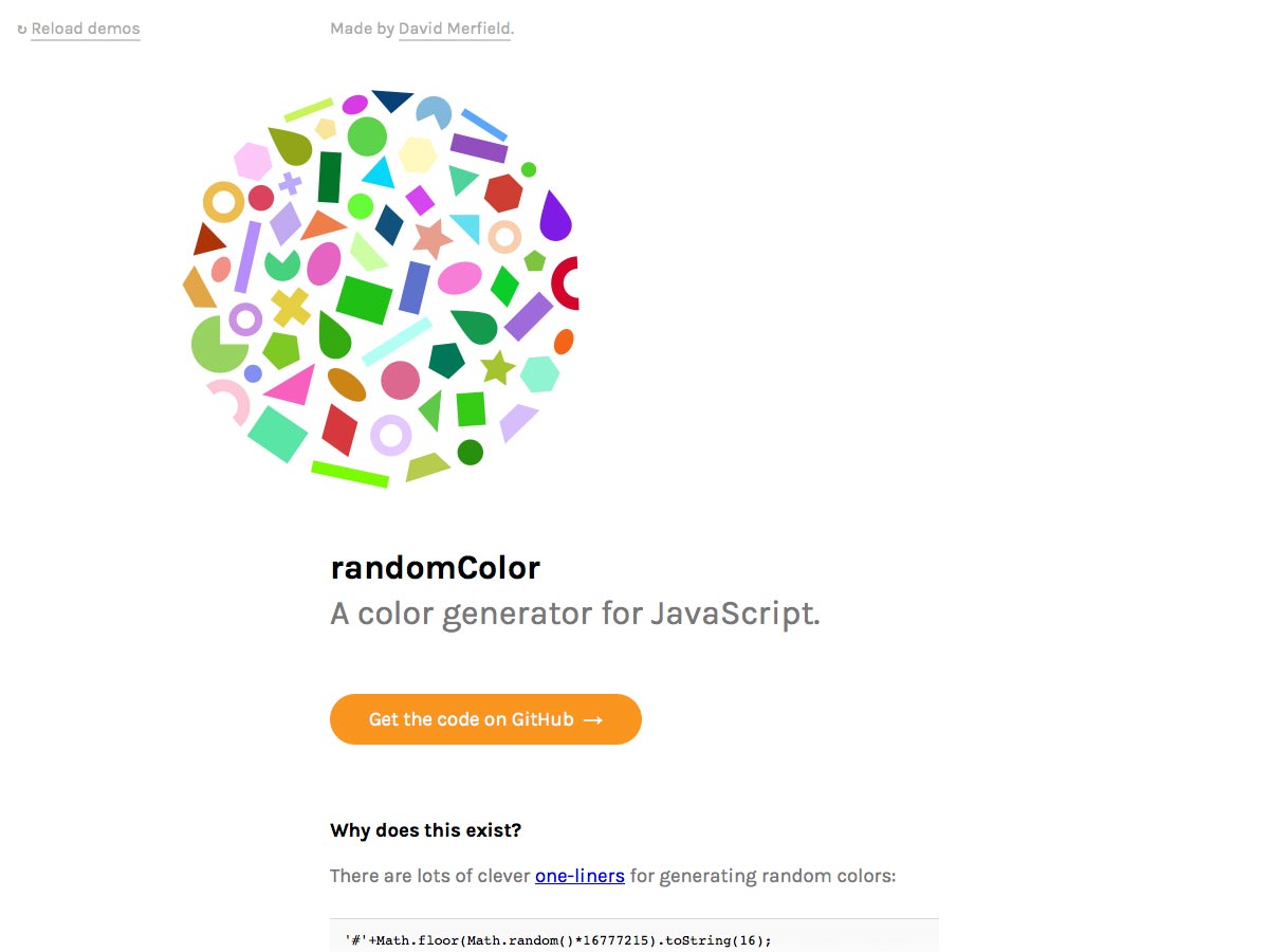 randomColor是个Javascript颜色生成器。但是不像其他生成器,它默认只生成“诱人的颜色”,摈弃了灰色、棕色和墨绿色。