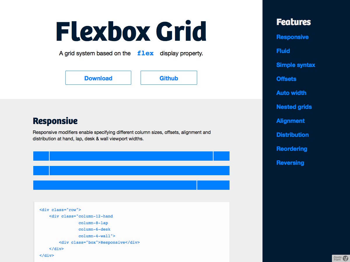 Flexbox Grid是个基于“flex”显示属性的栅格系统。它集响应式、流式布局于一身,语法简单,还有更多特性。
