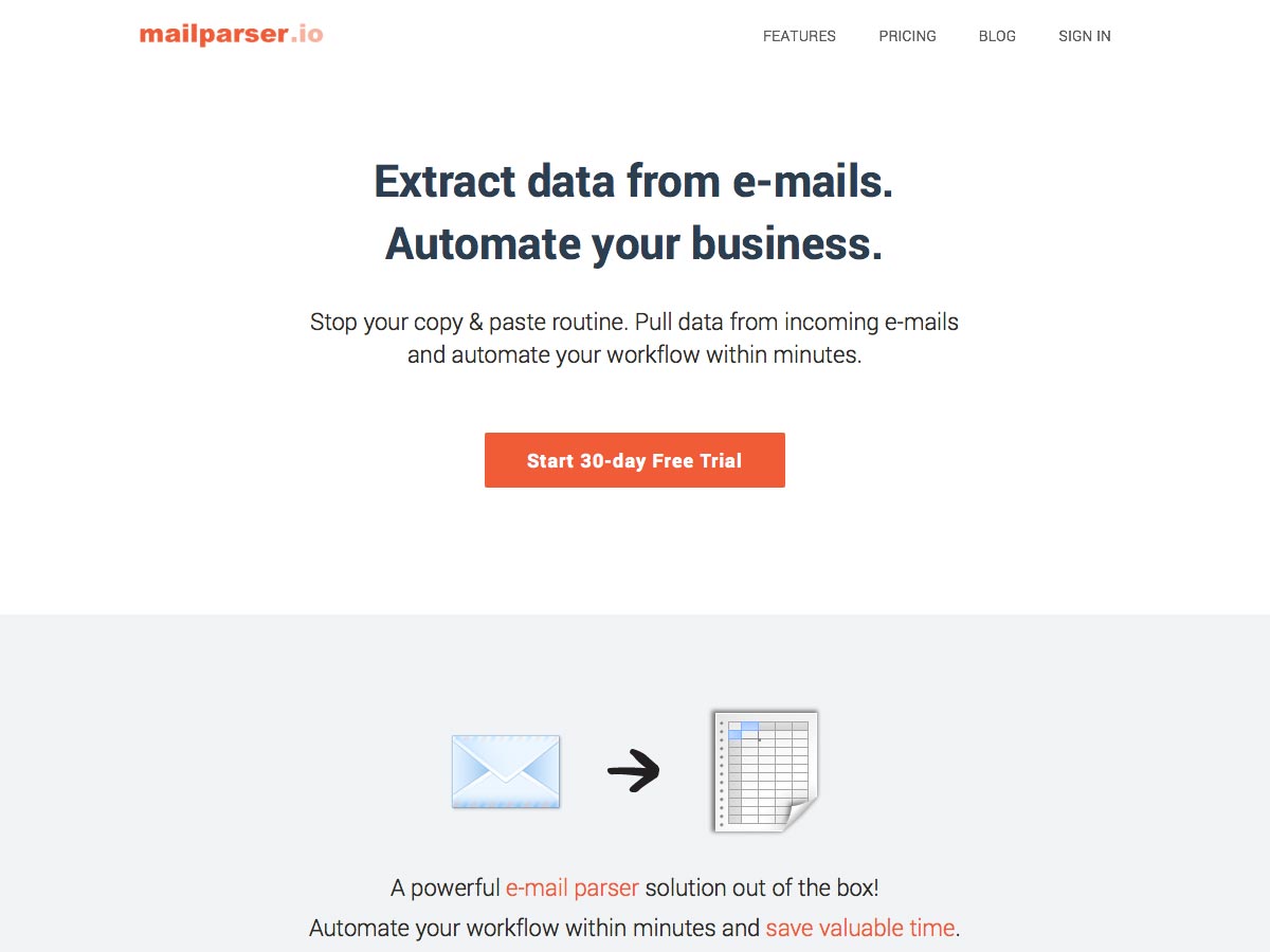 Mailparser.io通过从邮件中提取数据来自动化你的工作流程。它有30天的免费试用期,费用19美元每月。