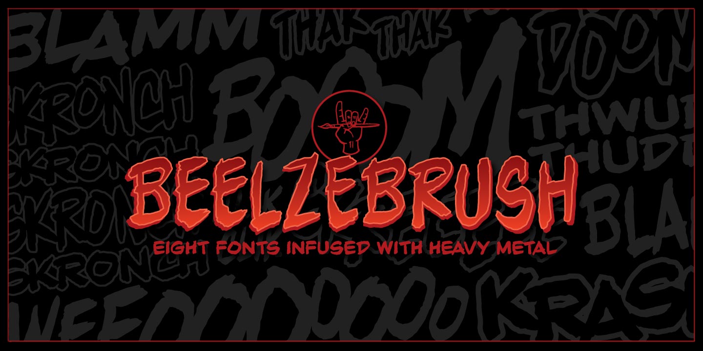 Beelzebrush的灵感来源于重金属,总共有8个字体族。包含普通、斜体、粗体,还有棱角分明的粗斜体,更粗的字型有着更统一的边缘。