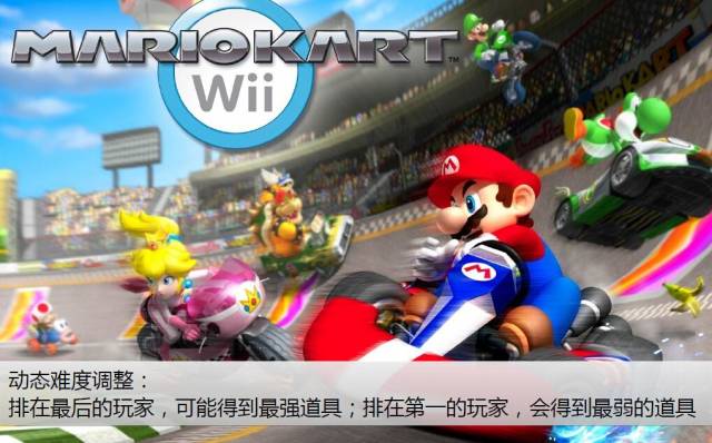 马里奥赛车这款游戏在这方面处理的不错,在游戏中排在比较后的玩家得到道具是最强的,排到前列的玩家拿到道具较弱。通过这样一个方式,降低了玩家的不良体验,也使得整个游戏的难度得以平衡。