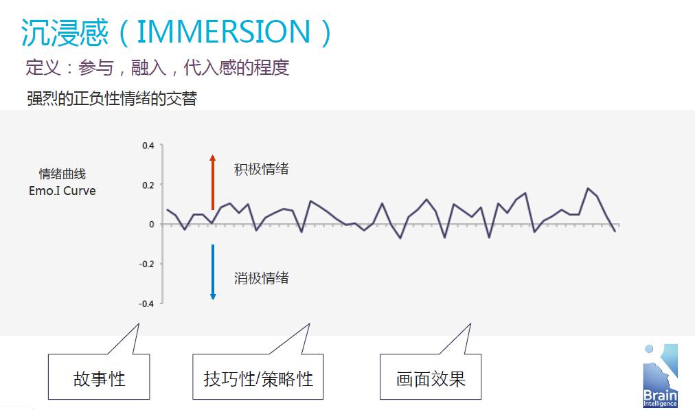 这张图标展现的是玩家在游戏中的情绪波动,上面是产生积极的情绪,下面是代表他产生消极的情绪。当玩家能体验到沉浸感的时候,他产生强烈的正负情绪交替。