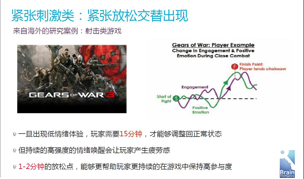 这是美国一款知名射击游戏,当玩家一旦出现低情绪状态的时候,游戏至少要耗费15分钟才有可能把玩家的情绪调动回来,很有可能15分钟当中玩家已经放弃这个游戏。
