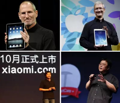 首先,要有顶层的动力。设计叫顶层动力?它应该是高层的团队集体认同设计驱动的战略,把设计创新视为公司的核心竞争力。下边的两张图大家都熟悉了,苹果在乔布斯时代是他亲自在推设计,在后乔布斯时代是库克在介绍新的产品、新的设计,在中国来讲,在过去几年中间越来越受到大家认知的两个品牌(小米和锤子),我们对他们的产品部做评价,但单是这两个企业的带头人,能够疯狂地去鼓吹设计,我对这两个品牌看好,因为最重要的一个因素他们已经占据了,CEO在做这个事情。