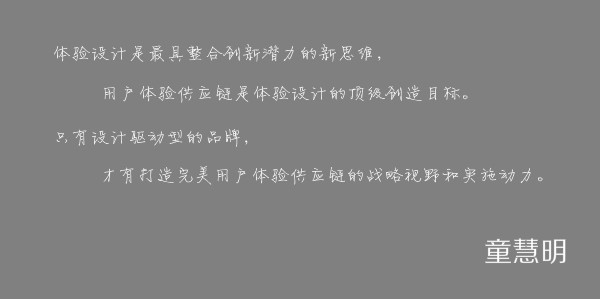 结论,体验设计是最具整合创新潜力的新思维,用户体验供应链是体验设计的顶级创造目标,只有设计驱动型的品牌,才有打造完美用户体验供应链的战略视野和实施动力。
