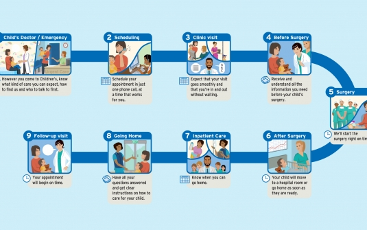 通过XPLANE的顾问环节,我们可以清楚看到我们希望在医疗中心和家庭沟通的九个关键步骤。我们发现对家庭来说自己的孩子经历手术是影响终生的体验,(因此)我们竭尽所能让他们安心并理解;我们发现这个图表帮助达成了这个目标。” David Perry,儿童医院 市场部主席