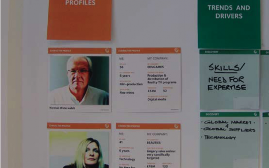 角色形象是创造集体智慧(分享知识)产物的工具——关于团队中服务使用者的知识。 创造这些角色形象需要一些重要性的假设的角色的鉴定并且然后几何一些图像和文字去描述他们中的每一个。 角色形象提供了不同类型的用户的清晰、视觉化的图片,而这些用户正是设计活动的中心。