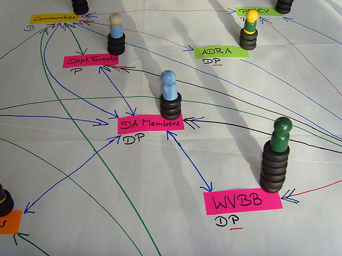 “网图是基于访谈的地图工具,帮助人们理解,视觉化,讨论和提高这样的情境:许多不同的行动者影响产出。个体和群体可以分清他们在情境中的视角,培养讨论,发展网络行动的策略方法。”(Eva Schiffer)